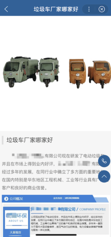 問題示例3:頁面標題是“垃圾車廠家哪家好“,內容卻是品牌軟文信息。